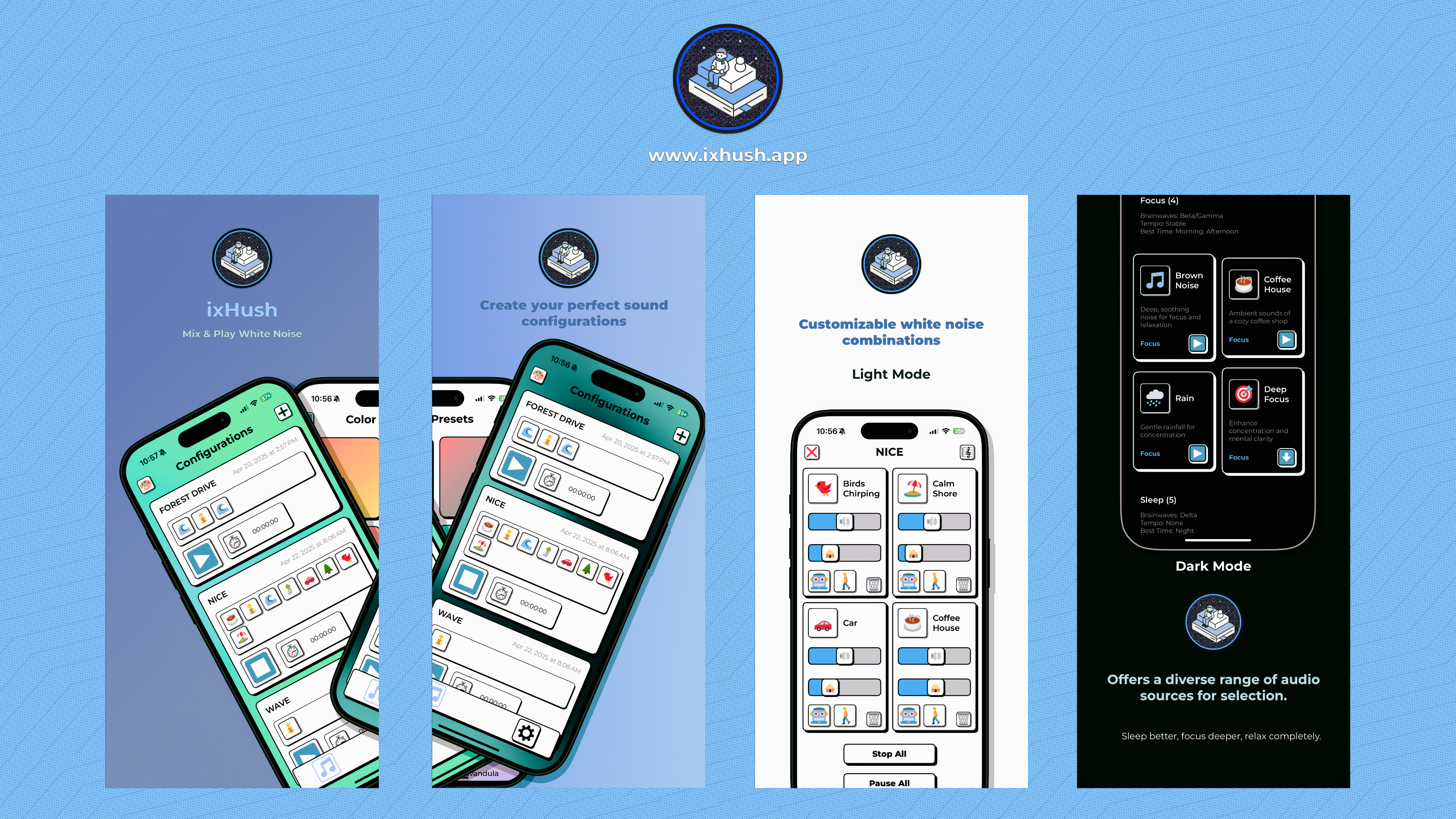 - 使用自定义的白噪音组合,打造您理想的声音环境。