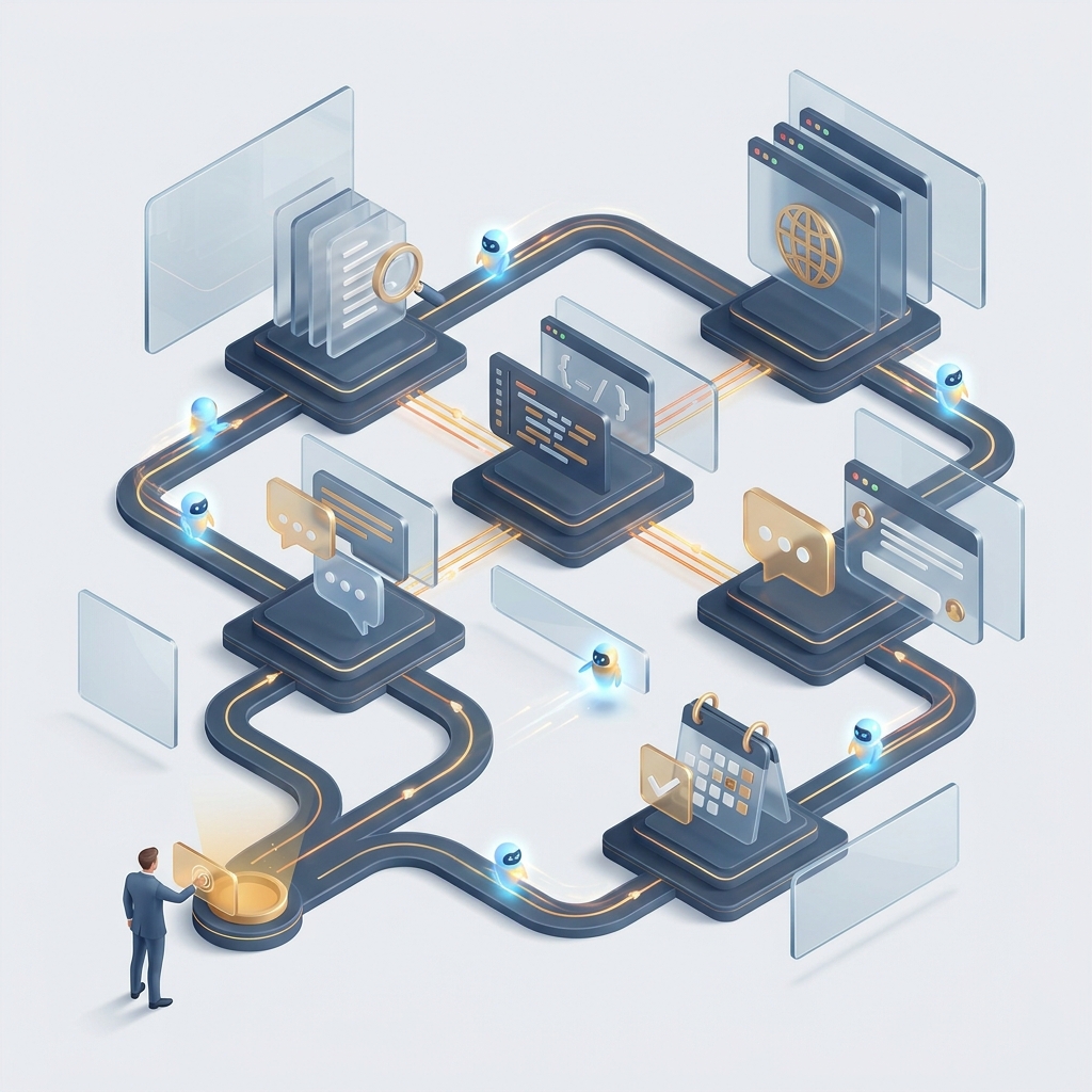 过去桌面 AI 更像一个入口:你提问,它回答;你复制粘贴,它辅助。现在产品形态明显往“工作台”靠。所谓工作台,不是多加几个按钮,而是系统开始承担调度责任:接入本地文件、浏览器、邮件、日历、消息、第三方 SaaS,再把一个目标拆成多个步骤,在不同模型和不同应用之间分发。