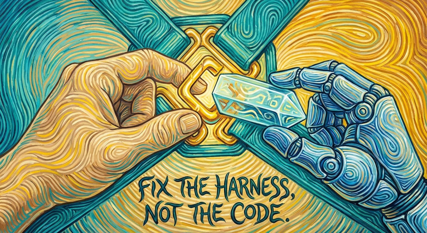 这个词最早由 HashiCorp 创始人 Mitchell Hashimoto(Terraform 的作者)提出。他在分享自己的 AI 采用旅程时,把第五阶段命名为 "Engineer the Harness"。