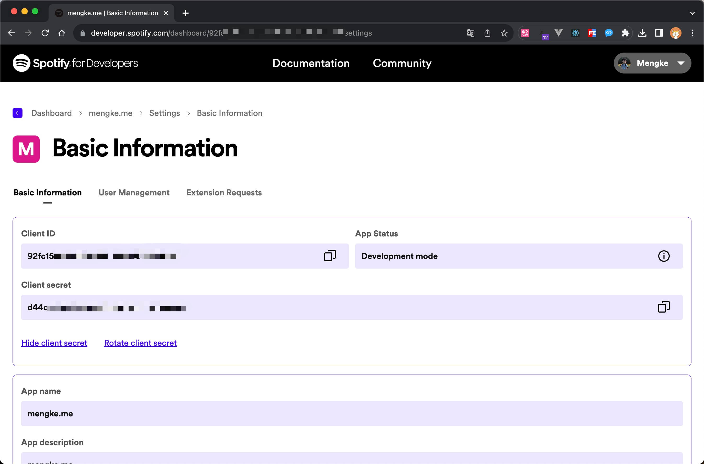 After creating the app, navigate to the Settings page and copy the Client ID and Client secret.